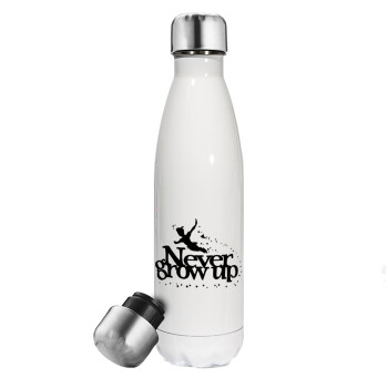 Peter pan, Never Grow UP, Metal mug thermos White (Stainless steel), double wall, 500ml
