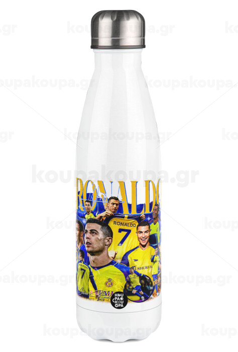 Cristiano Ronaldo Al Nassr, Metal mug thermos White (Stainless steel), double wall, 500ml