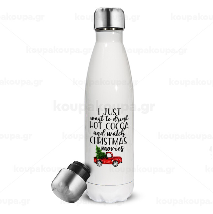 I just want to drink hot cocoa and watch christmas movies pickup car, Metal mug thermos White (Stainless steel), double wall, 500ml