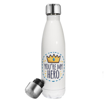 Dad, you are my hero!, Metal mug thermos White (Stainless steel), double wall, 500ml
