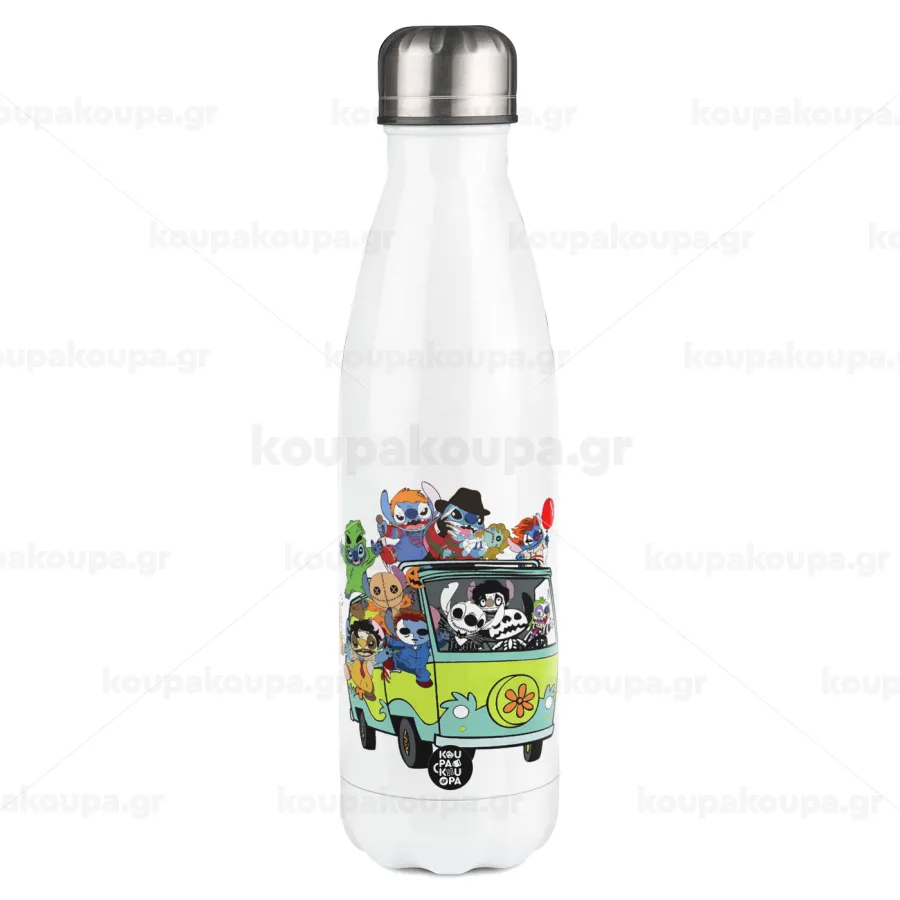 Stitch Halloween scooby car, Metal mug thermos White (Stainless steel), double wall, 500ml