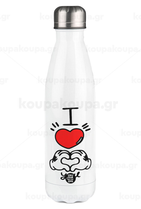 comics hands love, Metal mug thermos White (Stainless steel), double wall, 500ml