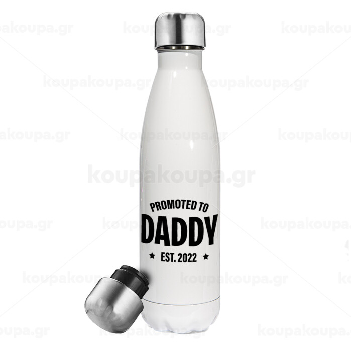 Promoted to Daddy, Metal mug thermos White (Stainless steel), double wall, 500ml