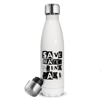 Save Water, Drink RAKI, Metal mug thermos White (Stainless steel), double wall, 500ml