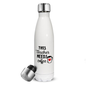 Τhis teacher needs coffee, Metal mug thermos White (Stainless steel), double wall, 500ml