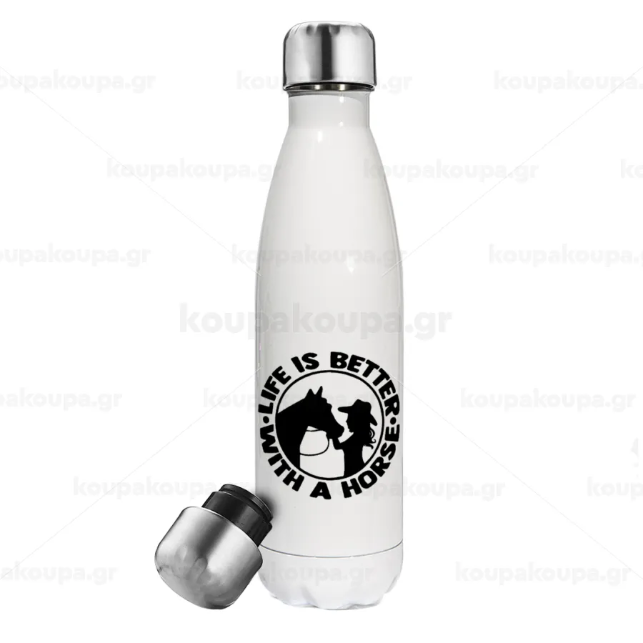 Life is Better with a Horse, Metal mug thermos White (Stainless steel), double wall, 500ml