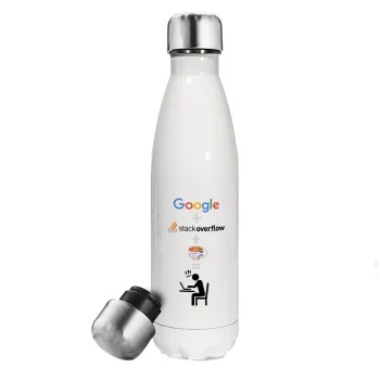 Google + Stack overflow + Coffee, Metal mug thermos White (Stainless steel), double wall, 500ml
