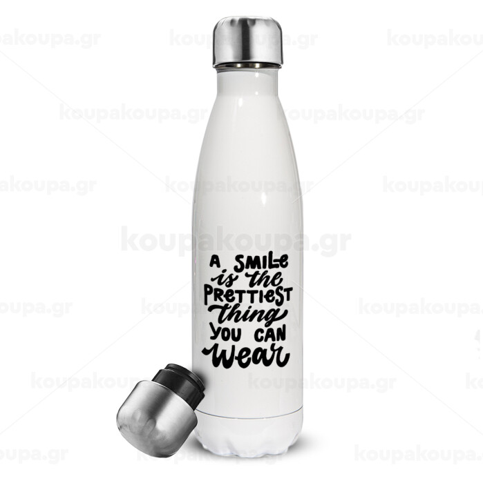 A smile is the prettiest thing you can wear, Metal mug thermos White (Stainless steel), double wall, 500ml