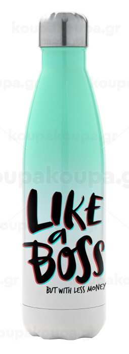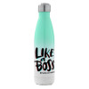 Like a boss, but with less money!!!, Metal mug thermos Green/White (Stainless steel), double wall, 500ml