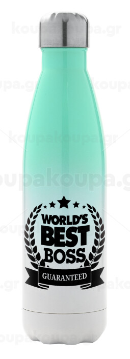 World's best boss stars, Metal mug thermos Green/White (Stainless steel), double wall, 500ml