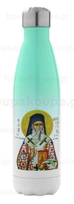 Saint Nektarios, Metal mug thermos Green/White (Stainless steel), double wall, 500ml