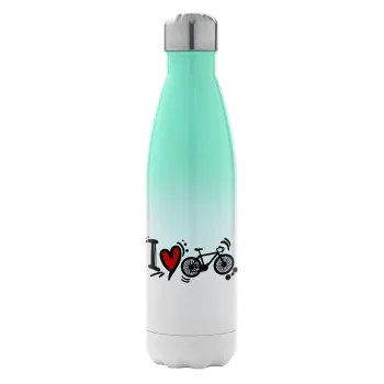 I love my bike, Metal mug thermos Green/White (Stainless steel), double wall, 500ml