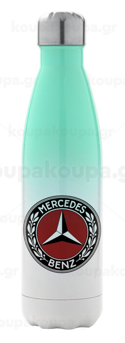 Mercedes vintage, Metal mug thermos Green/White (Stainless steel), double wall, 500ml