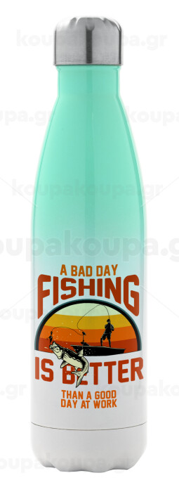 A bad day FISHING is better than a good day at work, Metal mug thermos Green/White (Stainless steel), double wall, 500ml