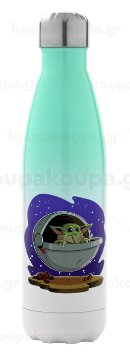 Baby Yoda mandalorian, Metal mug thermos Green/White (Stainless steel), double wall, 500ml