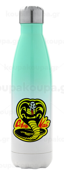 Cobra Kai Yellow, Metal mug thermos Green/White (Stainless steel), double wall, 500ml