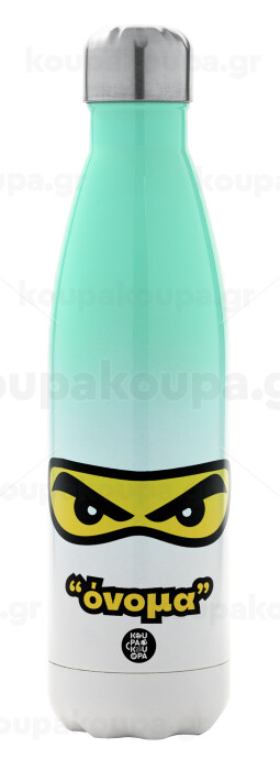Ninja Eyes με όνομα, Metal mug thermos Green/White (Stainless steel), double wall, 500ml