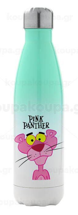Pink Panther cartoon, Metal mug thermos Green/White (Stainless steel), double wall, 500ml