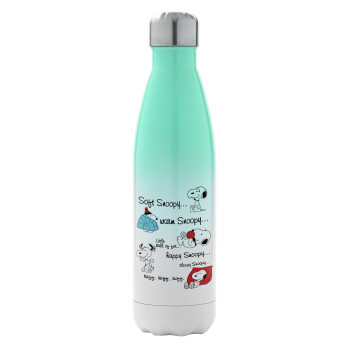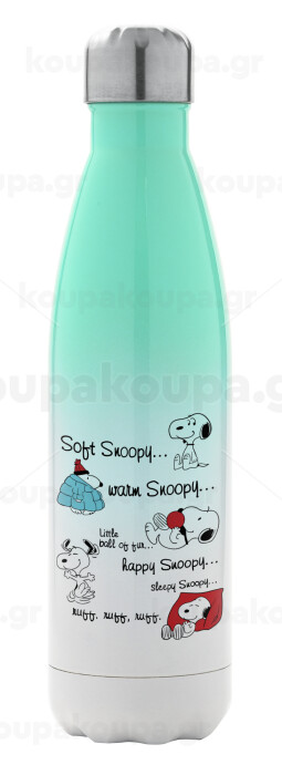 Snoopy manual, Metal mug thermos Green/White (Stainless steel), double wall, 500ml