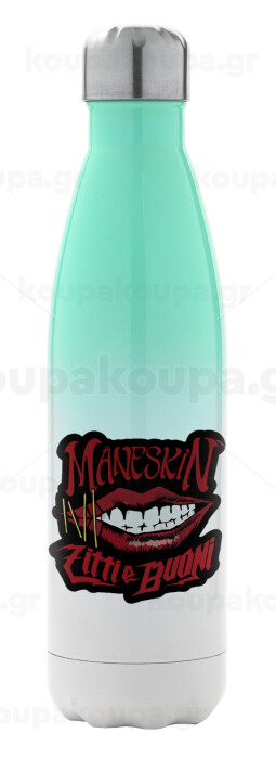 Maneskin lips, Metal mug thermos Green/White (Stainless steel), double wall, 500ml