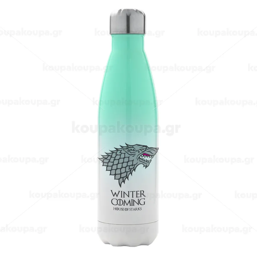 GOT House of Starks, winter coming, Metal mug thermos Green/White (Stainless steel), double wall, 500ml