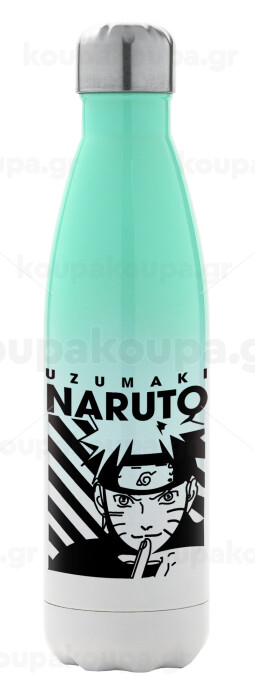 Naruto uzumaki, Metal mug thermos Green/White (Stainless steel), double wall, 500ml