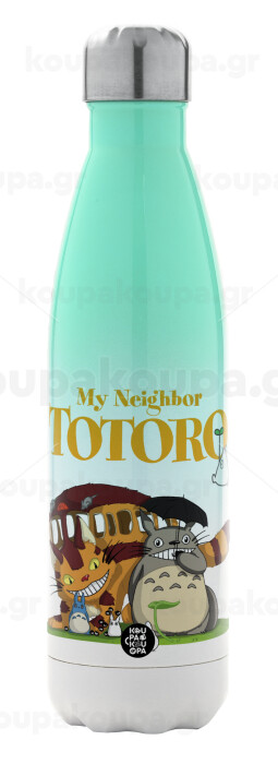 Totoro and Cat, Metal mug thermos Green/White (Stainless steel), double wall, 500ml