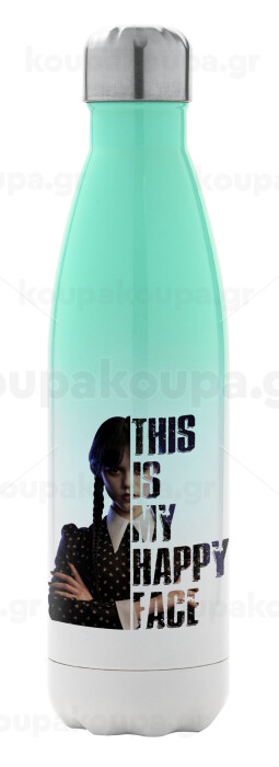 Wednesday, This is my happy face, Metal mug thermos Green/White (Stainless steel), double wall, 500ml