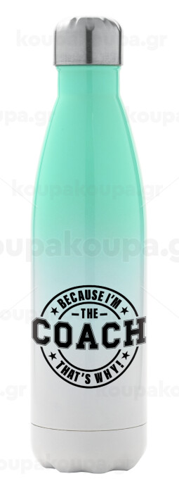 Because i'm the Coach, Metal mug thermos Green/White (Stainless steel), double wall, 500ml