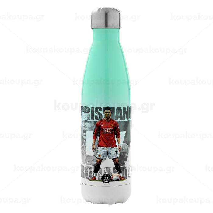 Cristiano Ronaldo (Κριστιάνο Ρονάλντο), Metal mug thermos Green/White (Stainless steel), double wall, 500ml