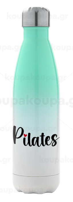 Pilates love, Metal mug thermos Green/White (Stainless steel), double wall, 500ml