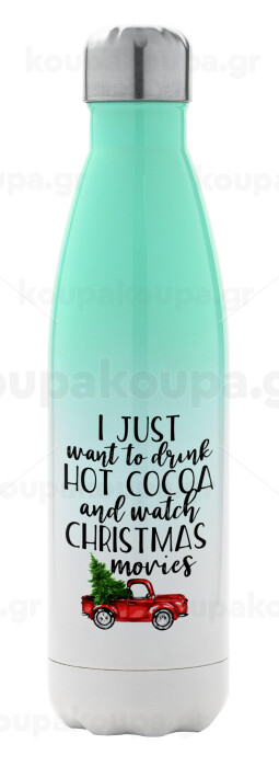 I just want to drink hot cocoa and watch christmas movies pickup car, Metal mug thermos Green/White (Stainless steel), double wall, 500ml