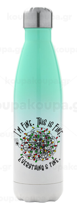 It's Fine I'm Fine Everything Is Fine, Metal mug thermos Green/White (Stainless steel), double wall, 500ml