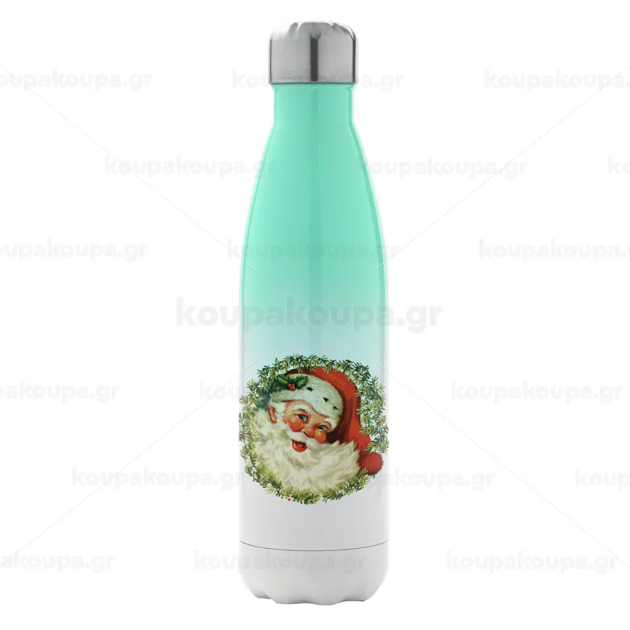 Santa Claus, Metal mug thermos Green/White (Stainless steel), double wall, 500ml
