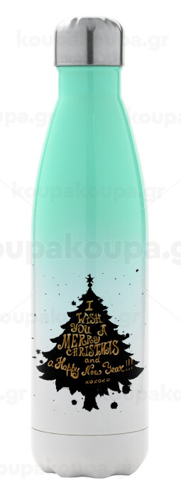 Tree, i wish you a merry christmas and a Happy New Year!!! xoxoxo, Metal mug thermos Green/White (Stainless steel), double wall, 500ml
