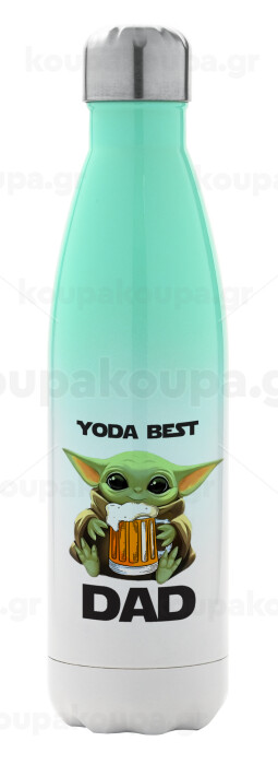 Yoda Best Dad, Metal mug thermos Green/White (Stainless steel), double wall, 500ml