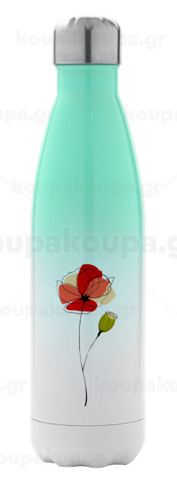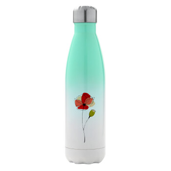 Red poppy flowers papaver, Metal mug thermos Green/White (Stainless steel), double wall, 500ml
