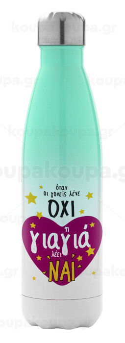 Όταν οι γονείς λένε ΟΧΙ, η γιαγιά λέει ΝΑΙ, Metal mug thermos Green/White (Stainless steel), double wall, 500ml