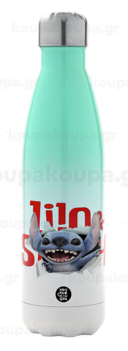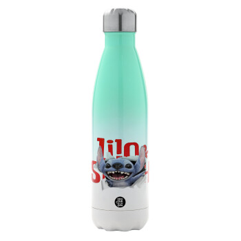 Stitch movie, Metal mug thermos Green/White (Stainless steel), double wall, 500ml