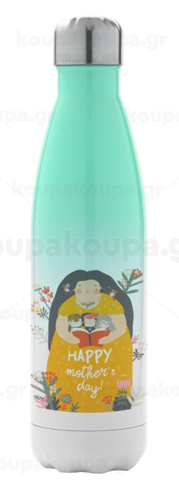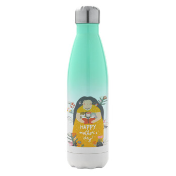 Cute mother reading book, happy mothers day, Metal mug thermos Green/White (Stainless steel), double wall, 500ml