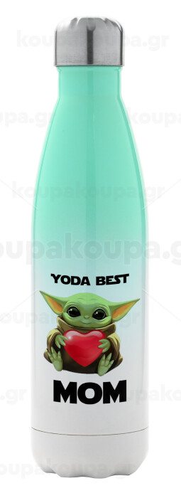 Yoda Best mom, Metal mug thermos Green/White (Stainless steel), double wall, 500ml