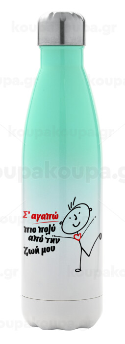 Σ'αγαπώ πιο πολύ από την ζωή μου!!!, Metal mug thermos Green/White (Stainless steel), double wall, 500ml