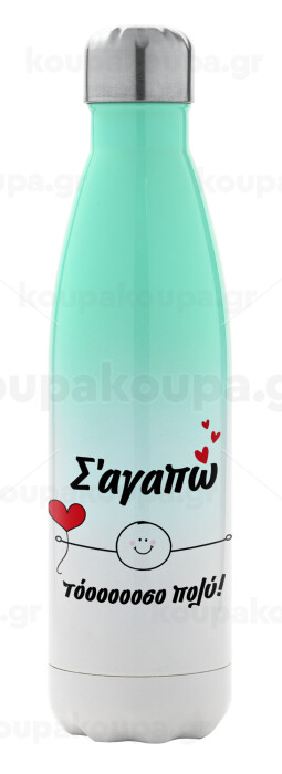 Σ΄αγαπώ τόοοοσο πολύ (Αγόρι)!!!, Metal mug thermos Green/White (Stainless steel), double wall, 500ml