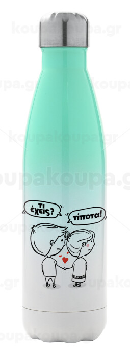 Τι έχεις? Τίποτα!, Metal mug thermos Green/White (Stainless steel), double wall, 500ml