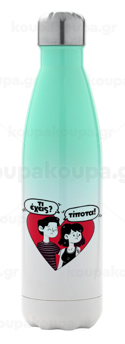 Τι έχεις? Τίποτα!, Metal mug thermos Green/White (Stainless steel), double wall, 500ml