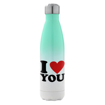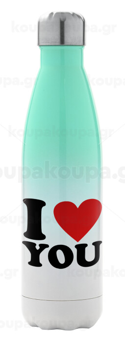 I LOVE YOU, Metal mug thermos Green/White (Stainless steel), double wall, 500ml
