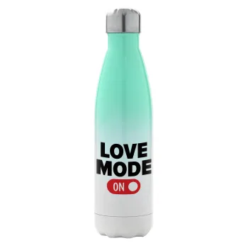 LOVE MODE ON, Metal mug thermos Green/White (Stainless steel), double wall, 500ml