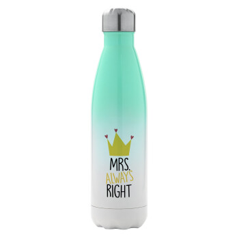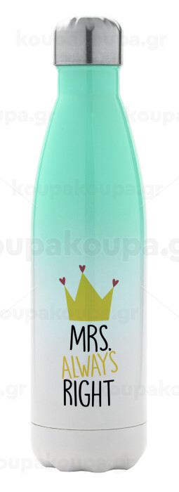Mrs "Always" right, Metal mug thermos Green/White (Stainless steel), double wall, 500ml