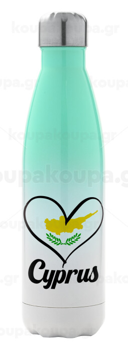 Cyprus flag, Metal mug thermos Green/White (Stainless steel), double wall, 500ml