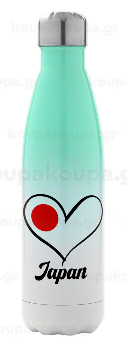 Japan flag, Metal mug thermos Green/White (Stainless steel), double wall, 500ml
